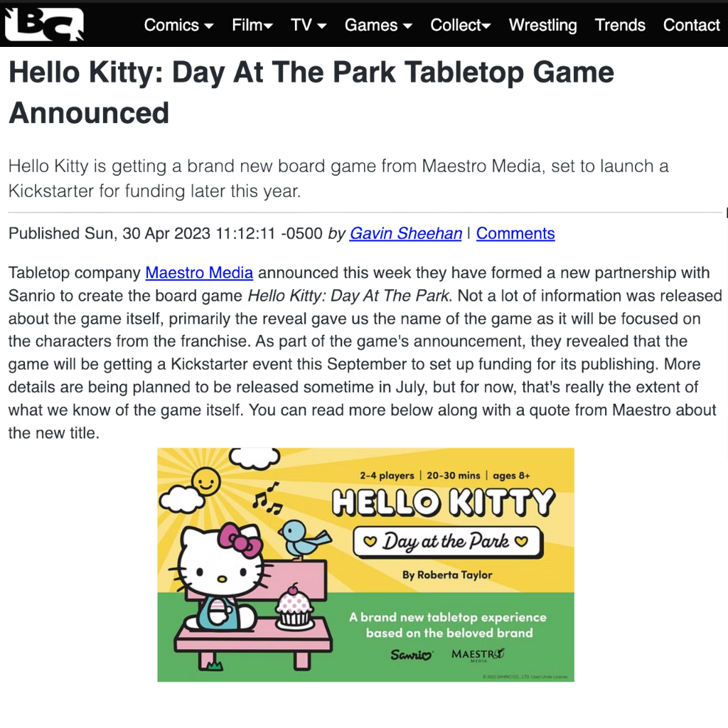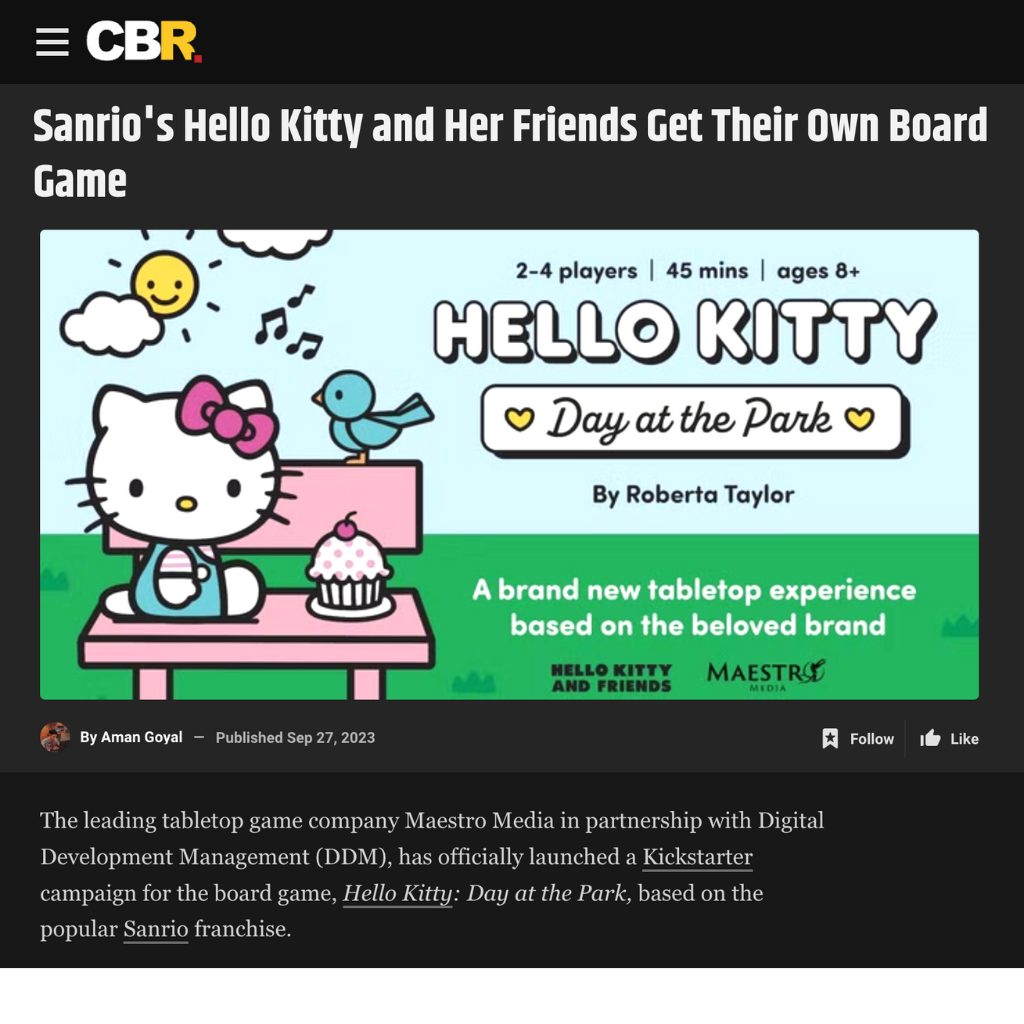 We did run a Kickstarter for Hello Kitty: Day at the Park, but it represented only a small part of the broader retail and influencer strategy. The primary goal was to ensure the game’s successful retail performance and visibility in mainstream markets. To achieve this, we worked with leading tabletop reviewers and content creators to generate authentic excitement within the board game community. One major highlight was the Dice Tower approval—a mark of credibility that helped position the game not just as a family collectible, but as a genuinely enjoyable tabletop experience.