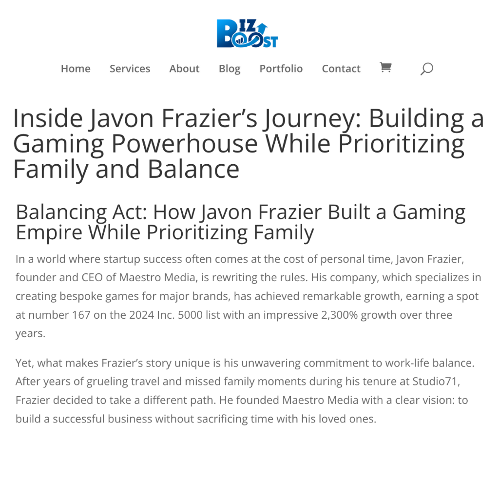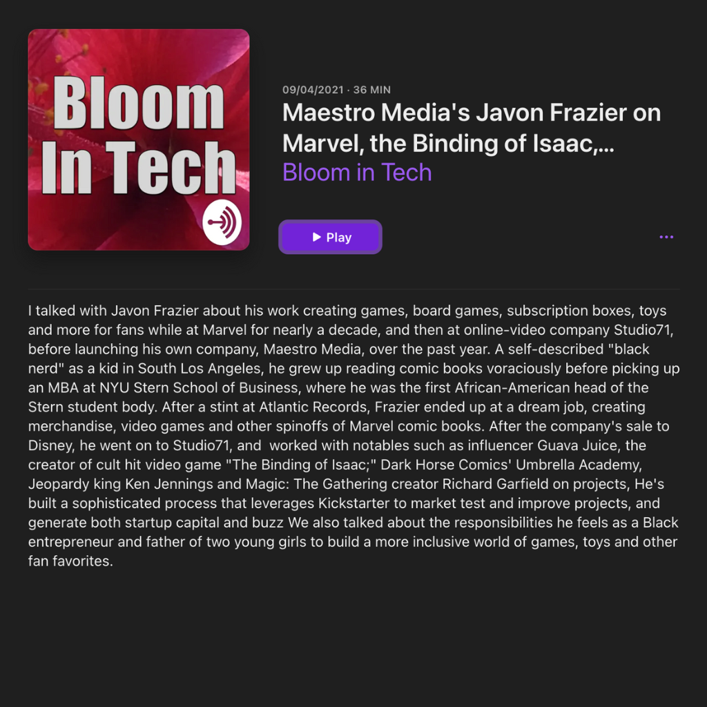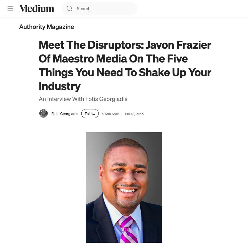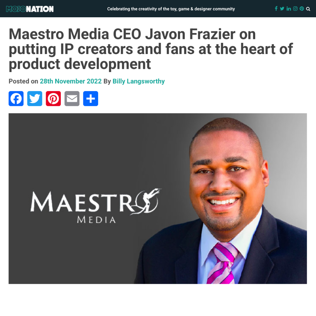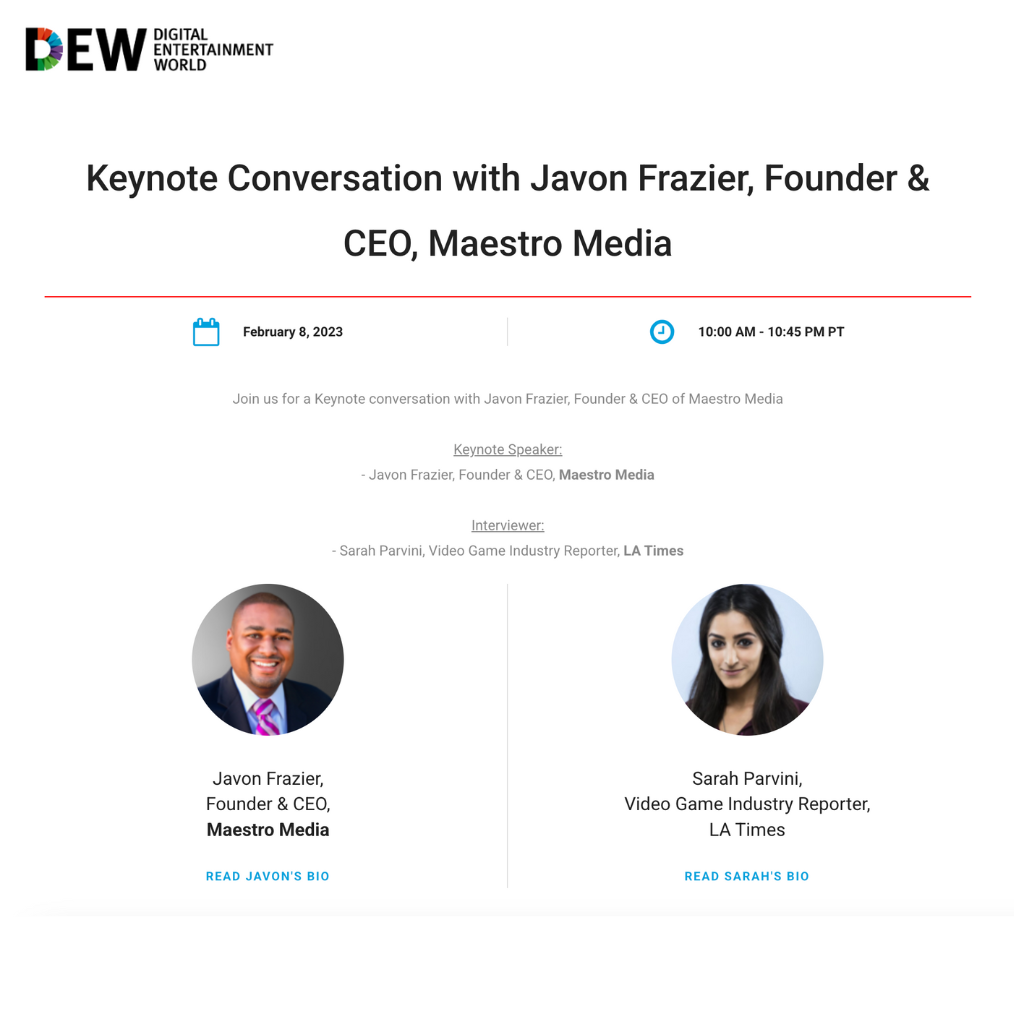 From Vice President, Games Marketing at Marvel Entertainment to CEO and Founder of Maestro Media – Javon Frazier has a wealth of experience that Pink Fins was able to elevate and utilize to amplify his voice and brand recognition, in order to champion him as a thought leader in the gaming industry.