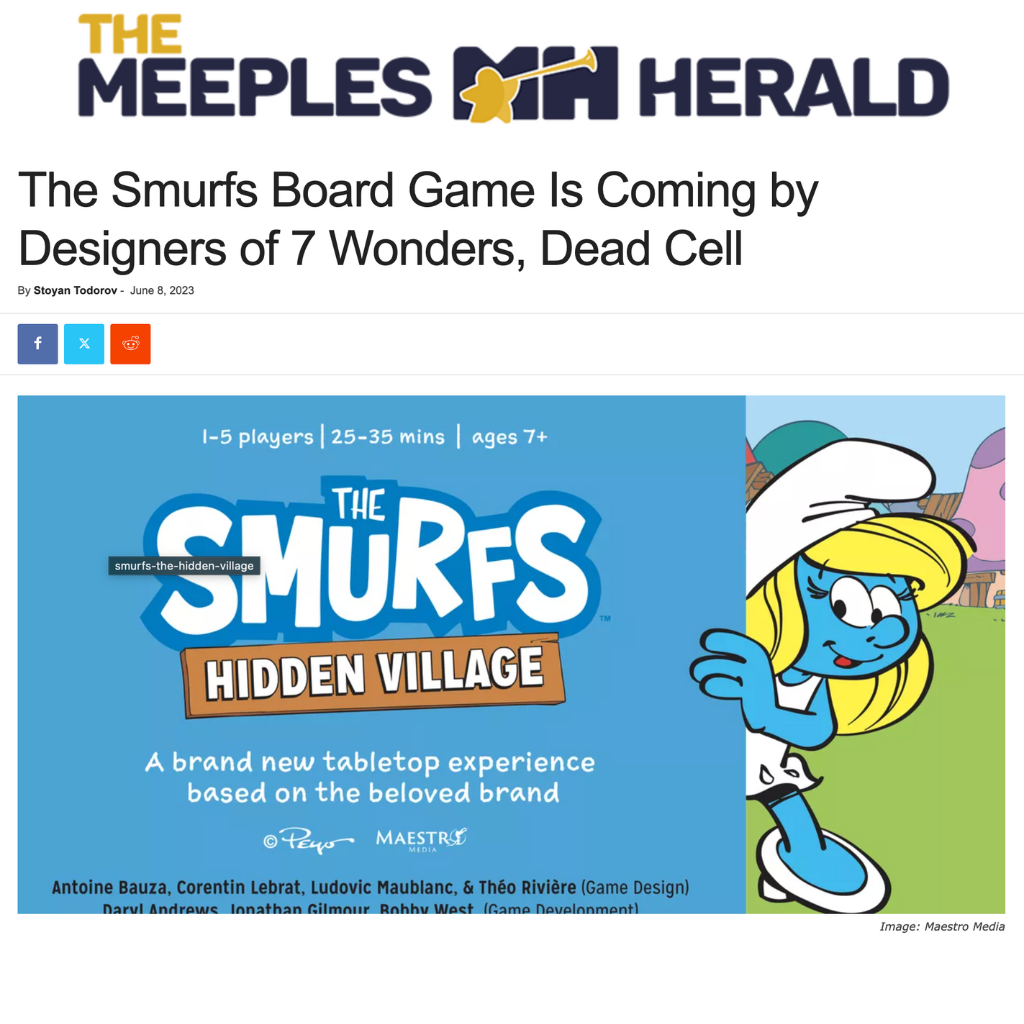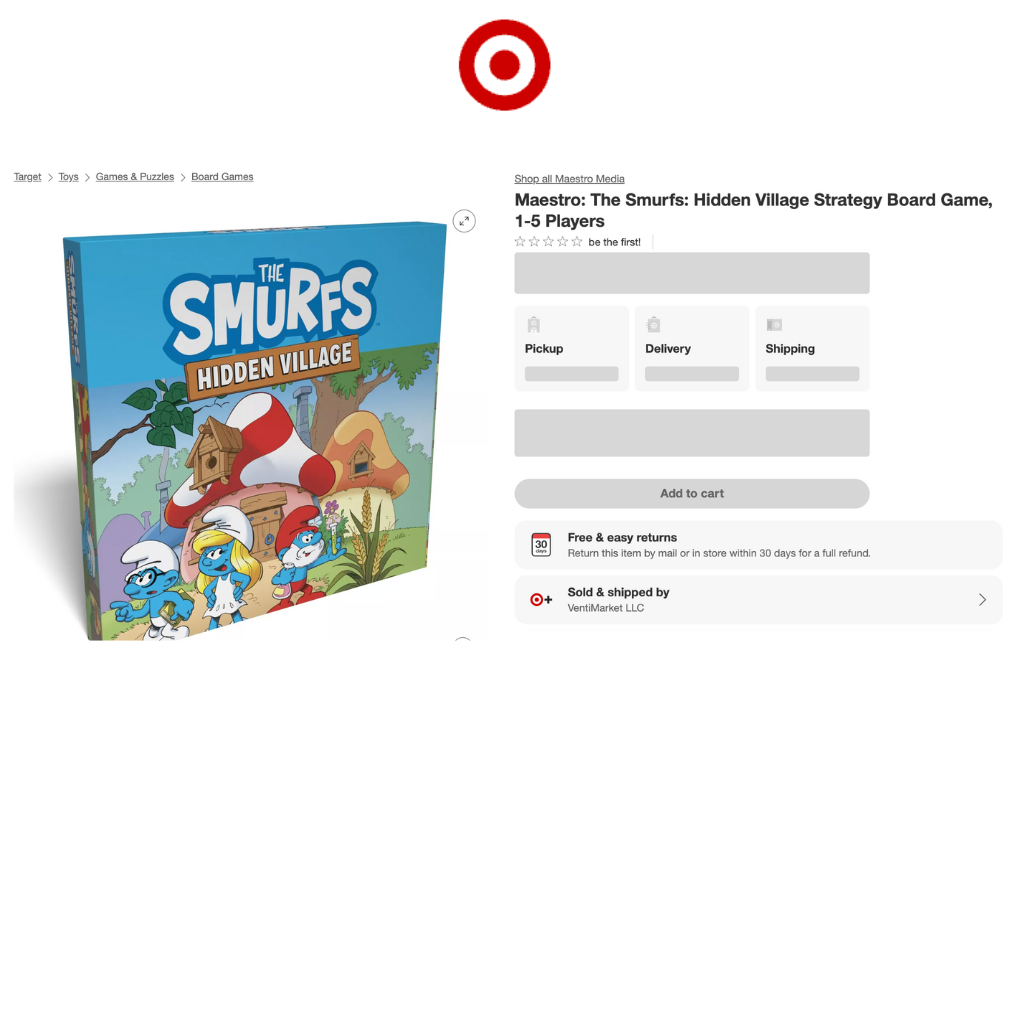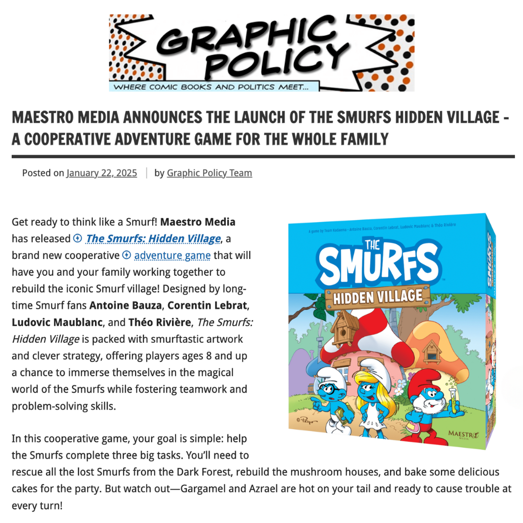 The Smurfs: Hidden Village was distributed directly through retail channels, debuting with a single core edition and one expansion. A key milestone for the release was its placement in Barnes & Noble, which immediately elevated its visibility among family audiences and collectors. Working with Peyo was an exceptionally smooth and collaborative process—the approvals were quick, the communication transparent, and the creative synergy strong. Together, both brands found a way to merge their distinct aesthetics seamlessly, resulting in a game that felt both authentically “Smurfs” and distinctly Maestro.