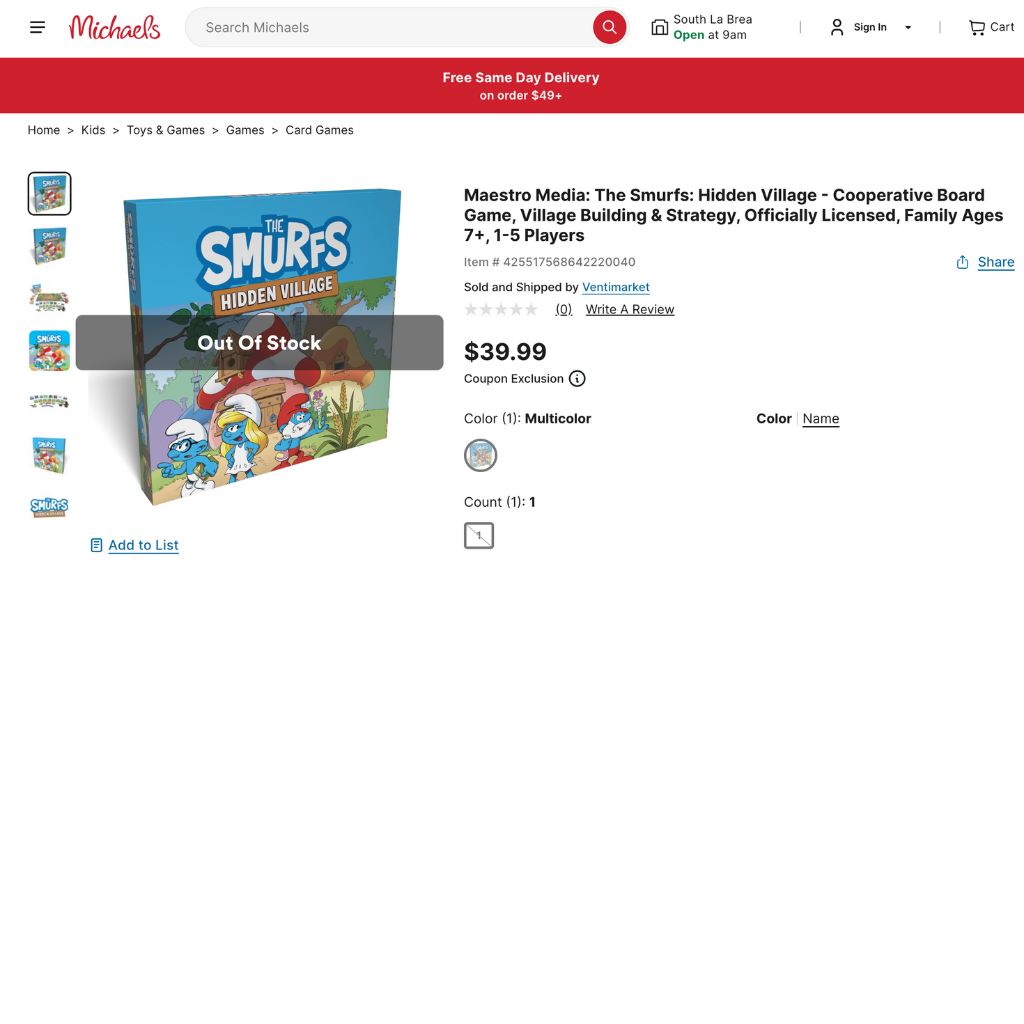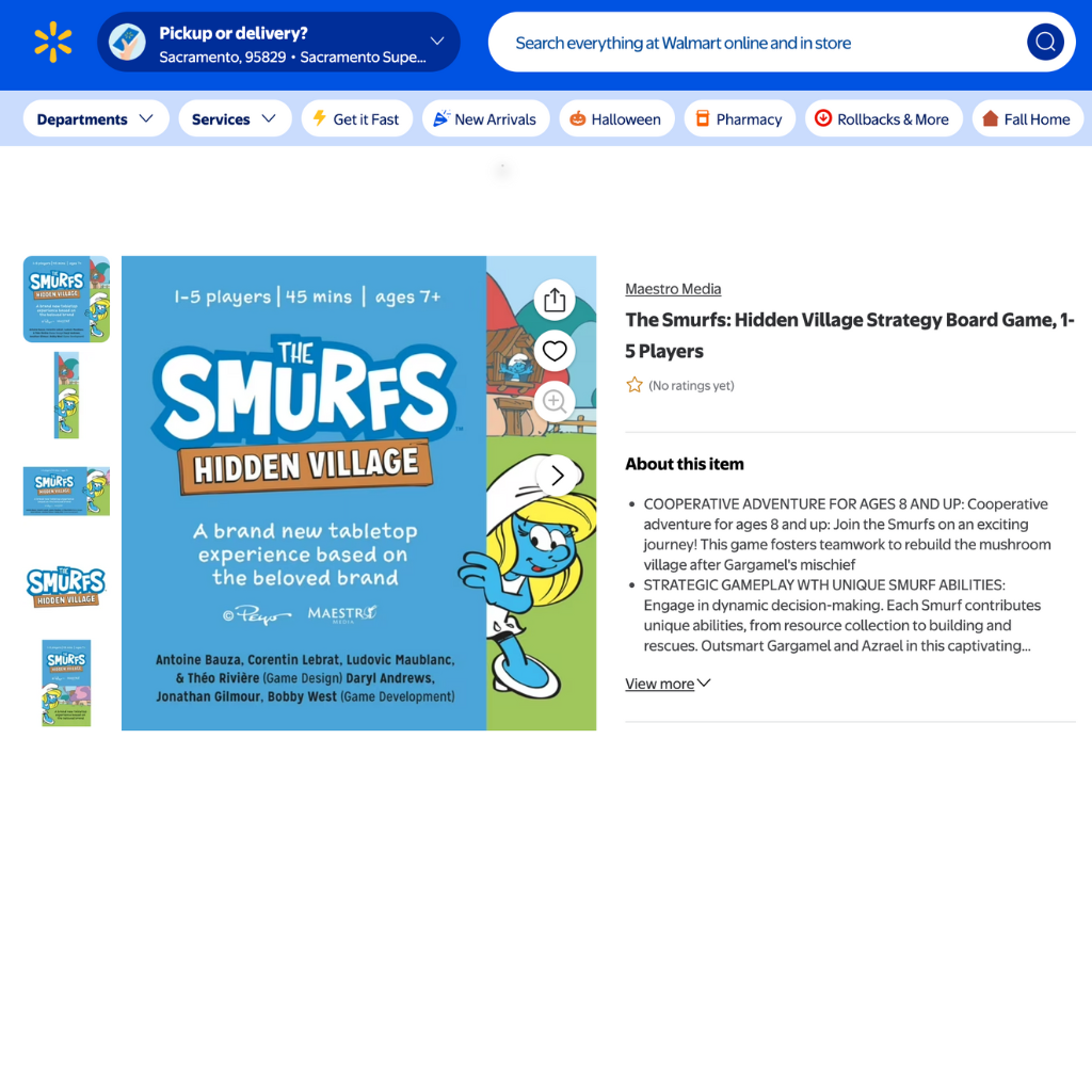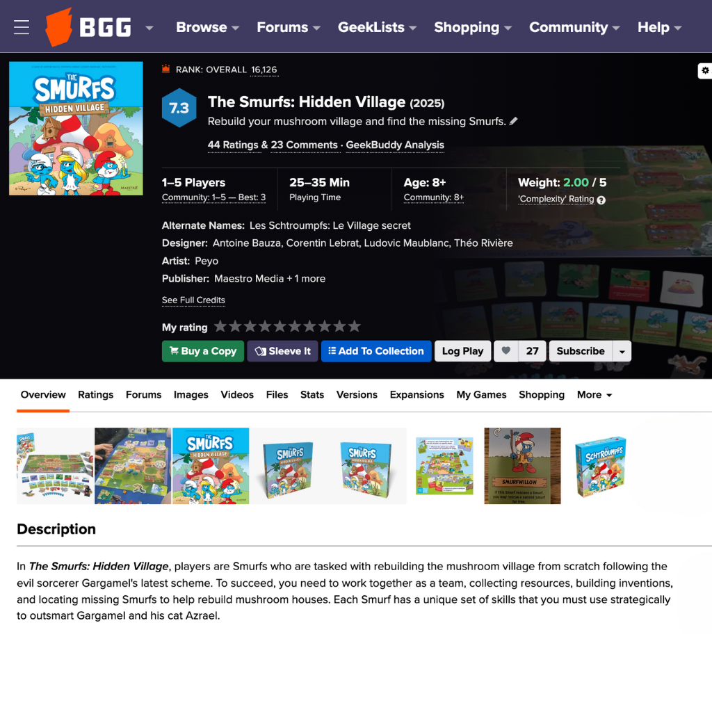 The Smurfs: Hidden Village was distributed directly through retail channels, debuting with a single core edition and one expansion. A key milestone for the release was its placement in Barnes & Noble, which immediately elevated its visibility among family audiences and collectors. Working with Peyo was an exceptionally smooth and collaborative process—the approvals were quick, the communication transparent, and the creative synergy strong. Together, both brands found a way to merge their distinct aesthetics seamlessly, resulting in a game that felt both authentically “Smurfs” and distinctly Maestro.