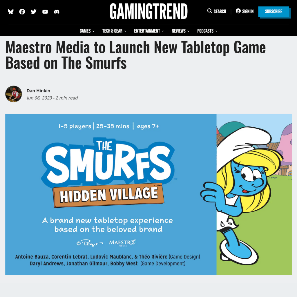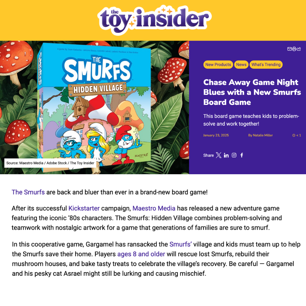 Maestro Media continued its progression into high-profile global IPs through a collaboration with Peyo, the original rights holder of The Smurfs, to launch The Smurfs: Hidden Village. This partnership built upon the success of Hello Kitty: Day at the Park and demonstrated Maestro Media’s growing capability to handle legacy brands with precision and creativity. The project breathed new life into one of the most beloved properties in pop culture, transforming the charm and nostalgia of The Smurfs into a modern tabletop experience.