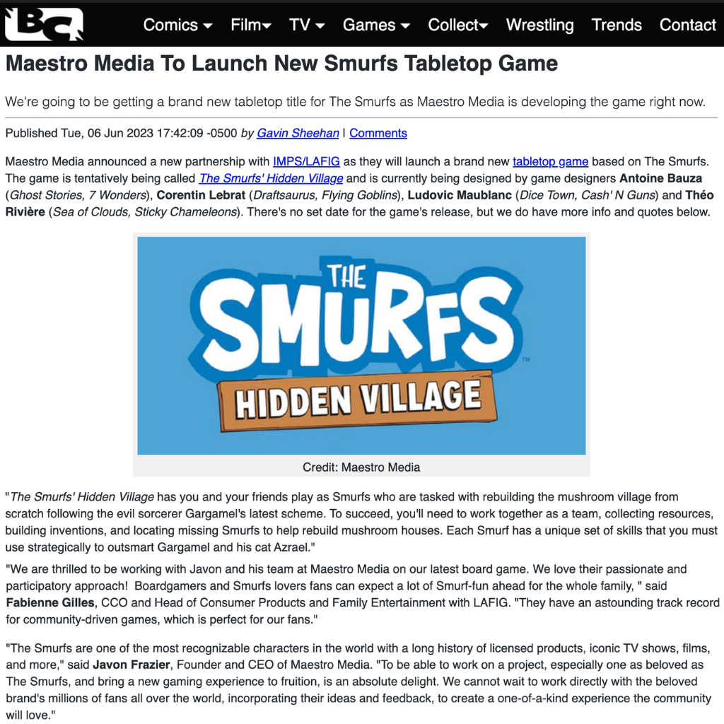 Together, these two titles demonstrated Maestro Media’s growing range—from classic family entertainment to immersive, fan-driven experiences—and reinforced the company’s ability to work seamlessly with iconic global brands. Reviving The Smurfs for a new generation required both reverence for the past and innovation for the future, and Maestro achieved that balance with creativity, professionalism, and heart.