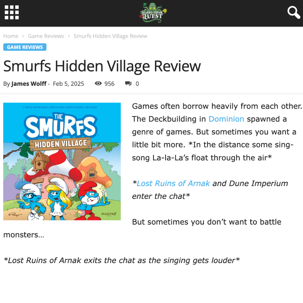 We worked closely with the Kadema Group, a French studio that designed the game, to showcase their creative process through developer diaries and behind-the-scenes interviews. Their passion and artistry were central to the marketing story, helping fans understand how the whimsical world of The Smurfs translated into board game mechanics. The game’s debut at Gen Con was a major success, highlighted by Javon Frazier’s panel appearance at Comic-Con, where he spoke about transforming beloved IPs into tabletop experiences. Hidden Village was later showcased at Essen Spiel 2024, where attendees responded enthusiastically to the gameplay and world-building.